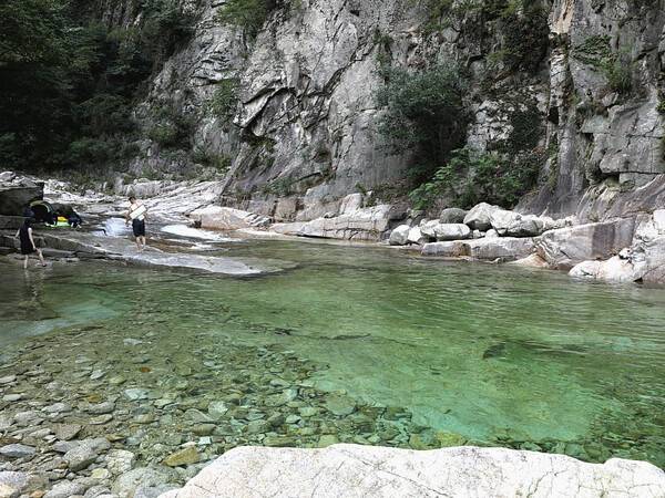 도마치계곡의 물놀이 스팟까지는 차량으로 진입할 수 없어 인근 공터에 주차를 한 뒤, 울타리를 넘어 약 30분 내외의 트레킹을 거쳐야 하는데요. 험한 산길을 헤치고 계곡을 마주하면 잠깐의 고생이 눈 녹듯 사라진다고 합니다.