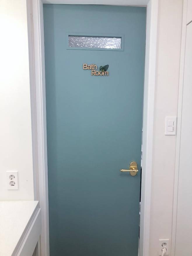 화장실 도어사인입니다. 문마다 우드레터링 구매 후 꽃과 잎으로 조금씩 꾸며줬습니다.