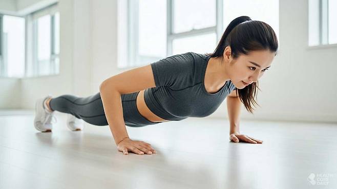 - 방법: 손을 어깨너비로 두고 몸을 일직선으로 유지한 채 팔을 굽혔다 펴기.