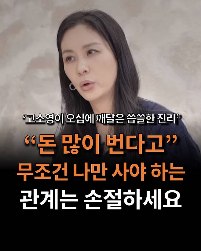 고소영이 오십에 깨달은 씁쓸한 진리 "돈 많이 번다고 나만 사야하는 관계는..."