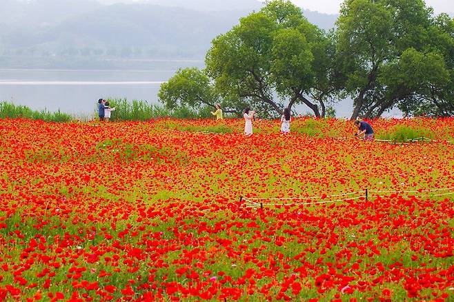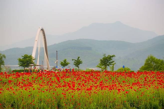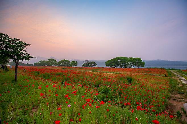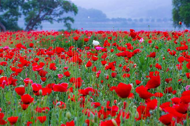서울에서 차로 약 한 시간 거리에 위치한 남양주 물의 정원은 광대한 면적의 수변공원입니다. 특히 매년 5월 말부터 6월 초 사이 흐드러지게 핀 양귀비의 물결은 우리나라가 맞나 싶을 정도로 화려한 뽐새를 내비치죠.