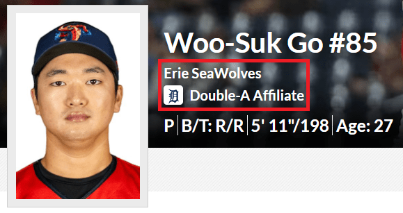 마이너리그 홈페이지 'MiLB.com'의 선수 이동 현황에 따르면, 고우석은 9일(이하 한국시각) 트리플A 톨리도 머드헨스에서 더블A 이리 시울브스로 이동했다. 홈페이지의 팀 로스터 현황에도 고우석이 등번호 85번을 받고 등록된 모습이 확인됐다.