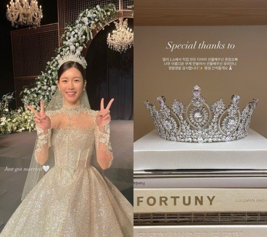 또한 이다인이 결혼식 당일 착용한 크고 화려한 티아라 역시 화제가 되었는데요. 이는 LA에 있는 이다인의 지인이 직접 만들어서 선물해준 것으로 결혼식에 특별한 의미를 더했습니다.