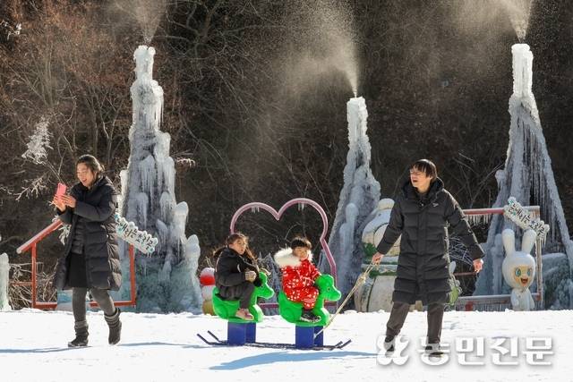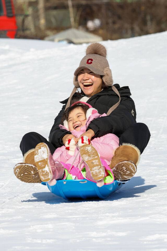 22일 경기도 파주시 법원읍 초리골마을 눈썰매장에서 방학을 맞은 아이들이 영하의 추위에도 눈 위를 달리며 해맑게 웃고 있다. 붉어진 볼과 밝은 표정에는 겨울방학의 설렘이 고스란히 담겨 있다.