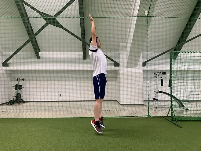 마무리 점프: 손을 머리 위로 들고 위로 점프하면서 마무리합니다.