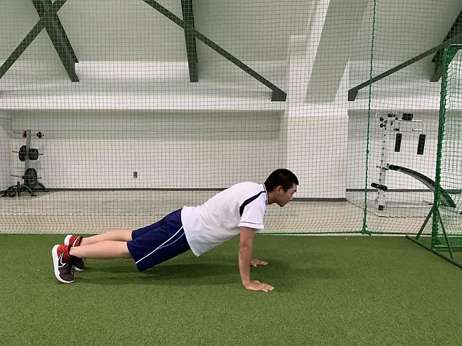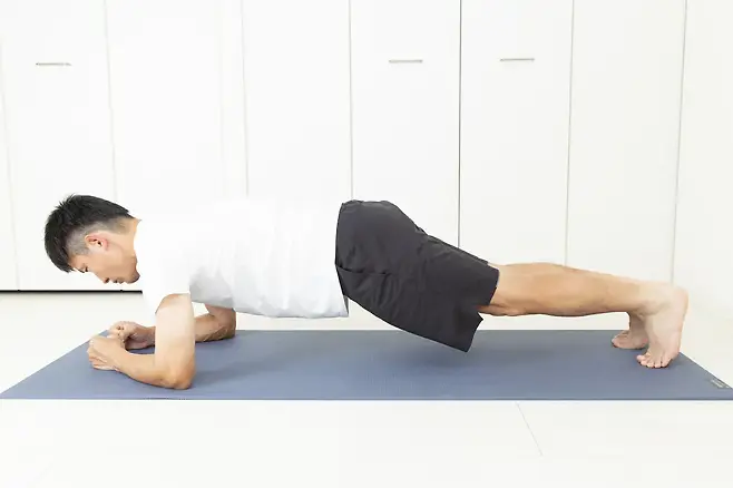 푸쉬업 (선택): 팔을 굽혀 가슴을 바닥 가까이 내렸다가 다시 밀어 올립니다.