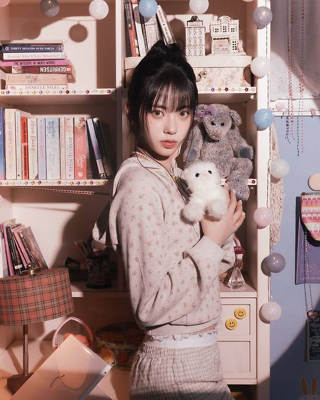 헤어스타일 역시 의상과 찰떡궁합을 이룬다. 잔머리를 자연스럽게 떨어뜨린 올림머리는 전체적인 룩에 캐주얼함과 소녀미를 동시에 더하며, 이즈나 코코만의 독보적인 분위기를 완성했다. 그녀 특유의 무표정과 카리스마 넘치는 시선은 마치 한 편의 화보처럼 다가온다.