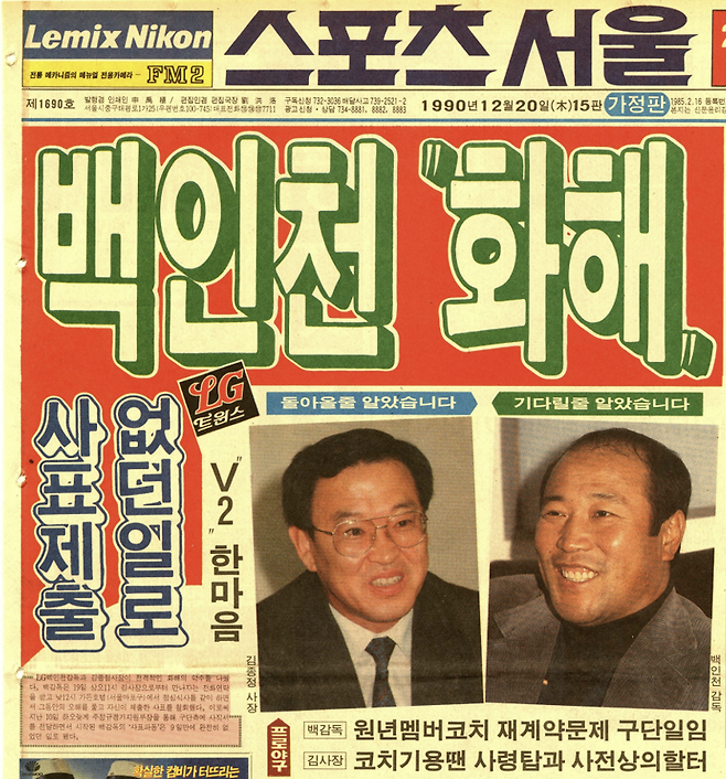 LG로서는 백인천 감독이 초대 감독인 데다 우승까지 이끈 사령탑이기에 진퇴양난이었다.
