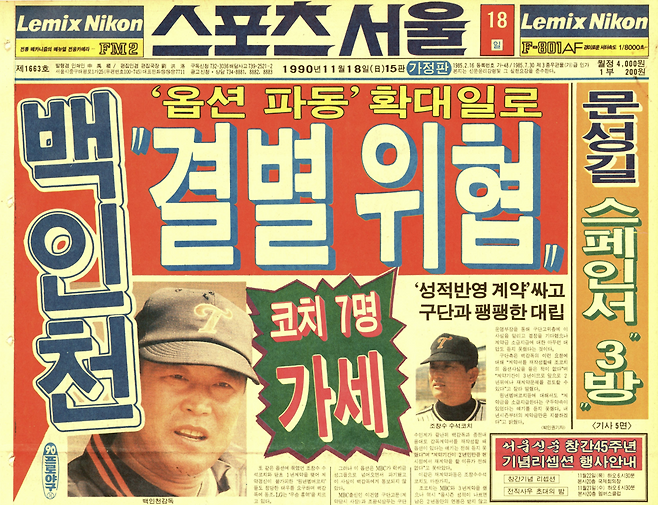 재계약 문제로 가뜩이나 심기가 틀어져 있던 백 감독은 노발대발했다. “코치를 영입하면서 어떻게 나와 상의를 하지 않느냐”며 골든글러브 시상식을 하루 앞두고 구단에 사표를 던진 것이었다.