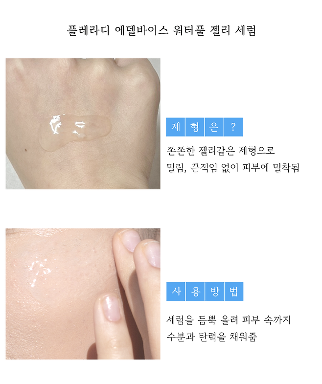 마지막으로 보여줄 에센스 아이템은 바로 플레라디 워터풀 젤리 세럼이야.