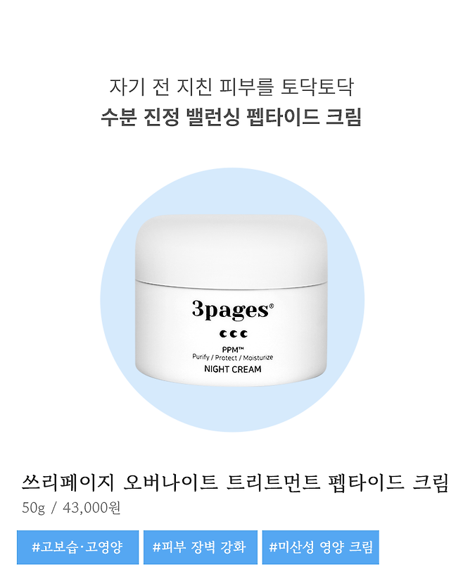 이번 한 해 에디터가 나이트 케어를 위해 가장 잘 사용한 제품이 바로 쓰리페이지의 나이트 크림이야.