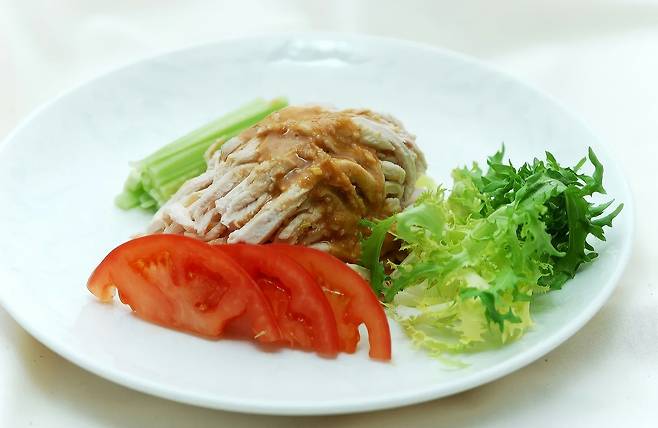 점심 : 현미밥 ½공 + 닭가슴살 120 g + 시금치·토마토 샐러드