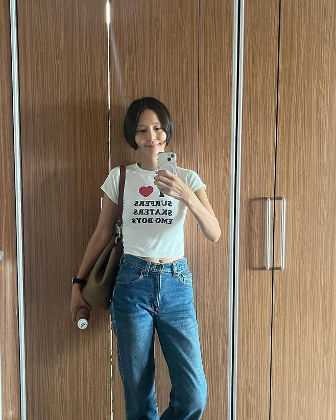 사진 속 김나영은 레터링이 있는 화이트 크롭티와 연청바지를 입고 도트무늬 가디건을 입어 캐주얼한룩을 선보였다. 또 다른 사진에서는 퍼플색의 니트와 청바지, 운동화를 신고 핑크색의 티와 청바지, 캡모자를 쓰고 내추럴한 데일리룩을 선보였다.