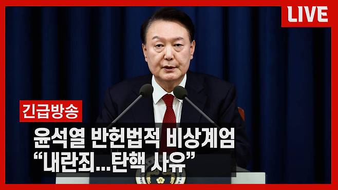 윤석열 대통령이 3일 밤 10시28분 긴급 담화를 통해 비상계엄을 선포했습니다.