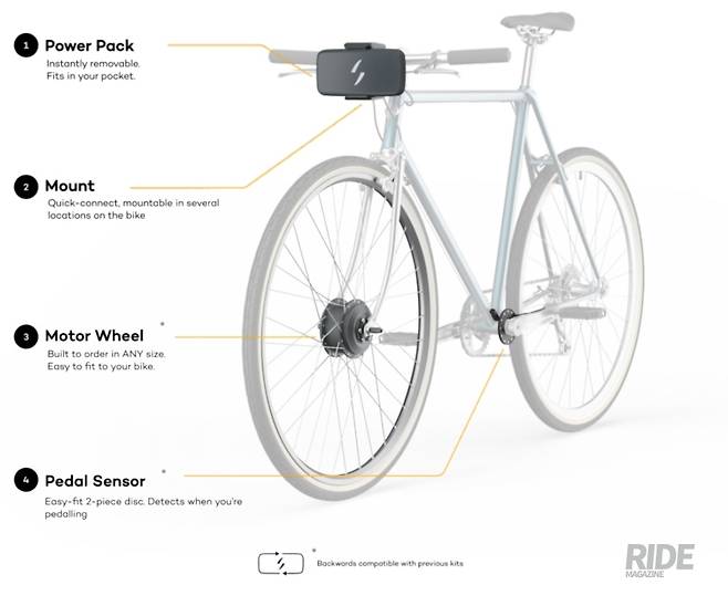 변환키트 장착 방법은 평소 자전거나 기계적인 정비에 관심이 조금이라도 있는 사람이라면 누구나 쉽게 할 수 있다. 가장 먼저 기존 장착되어 있는 프런트 휠을 분리, 변환키트 휠을 장착하고 운전자의 케이던스를 측정하는 페달센서를 크랭크 암 안쪽에 설치, 두 부분을 핸들바 배터리팩 마운트와 케이블로 연결하면 완성이다.