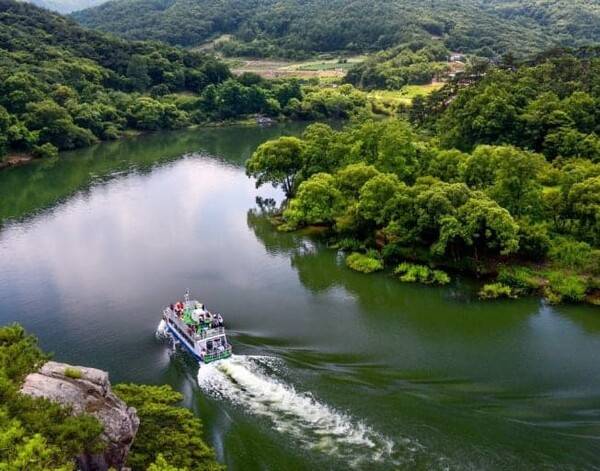 산막이옛길은 다양한 방법으로 즐길 수 있다는 점도 장점이에요. 트레킹을 마치고 돌아올 때는 산막이마을 선착장에서 유람선을 타고 차돌바위 선착장까지 이동할 수 있습니다. 유람선을 타면 괴산호의 시원한 바람과 함께 호수 위에서 바라보는 산막이옛길의 풍경을 감상할 수 있어요.