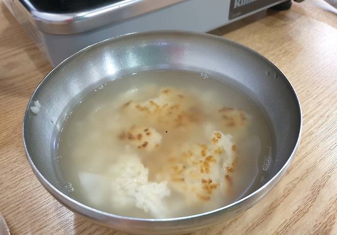 누룽지를 긁을 때 탄 부분이 있다면 최대한 덜 긁어내세요. 푹~ 끓이기보다는 5분 이내로 물을 살짝 데우듯 끓이세요. 간을 맞추고 싶다면 소금 대신 들기름 한 방울 넣으면 맛있습니다.