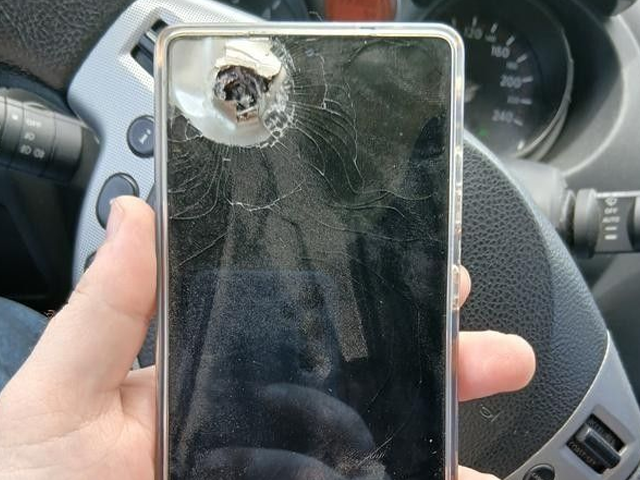 그는 게시글에 파편에 뚫린 화면 사진도 함께 올렸다.