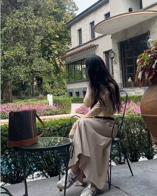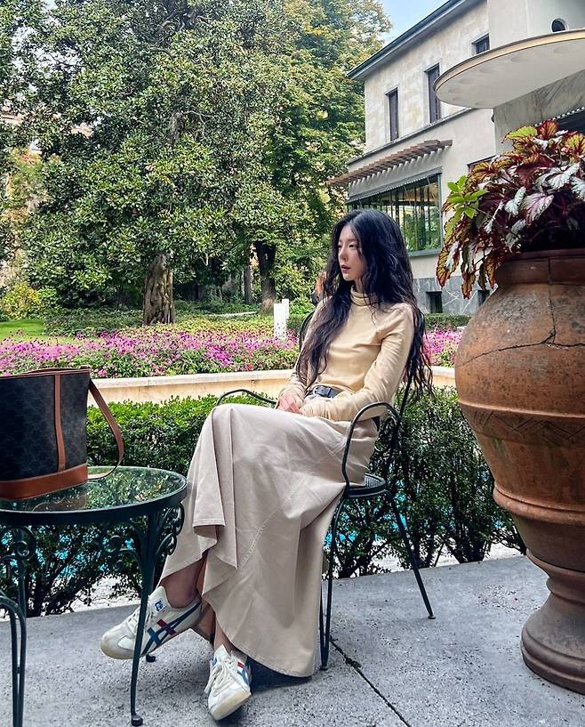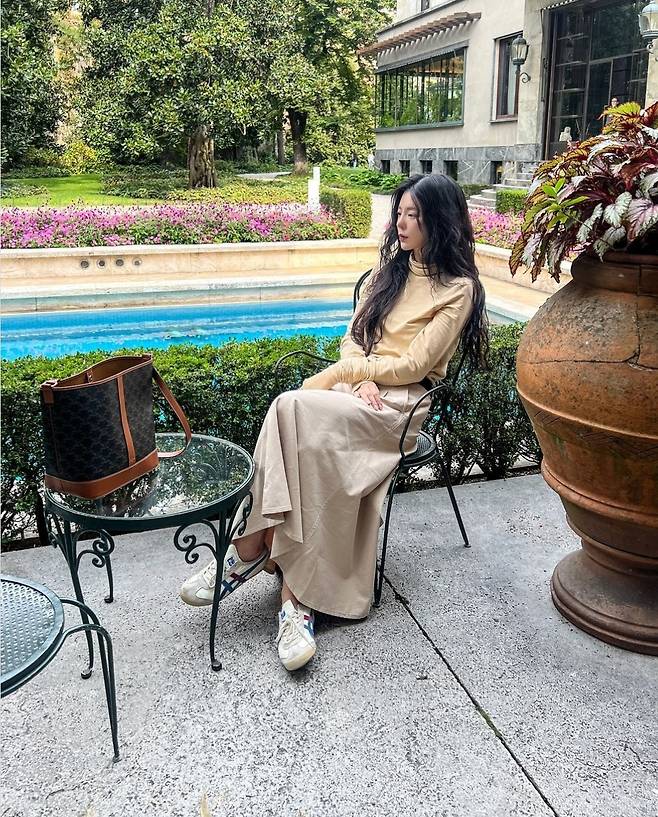 여기에 캐주얼한 스니커즈를 매치해 편안함을 더했으며 긴 웨이브 헤어가 자연스럽게 흩날려 소박하면서도 감각적인 무드를 자아냈습니다.