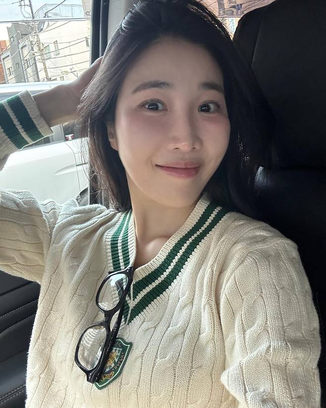 민낯에 가까운 미소 하나, 니트 하나로 분위기 완성된 날
