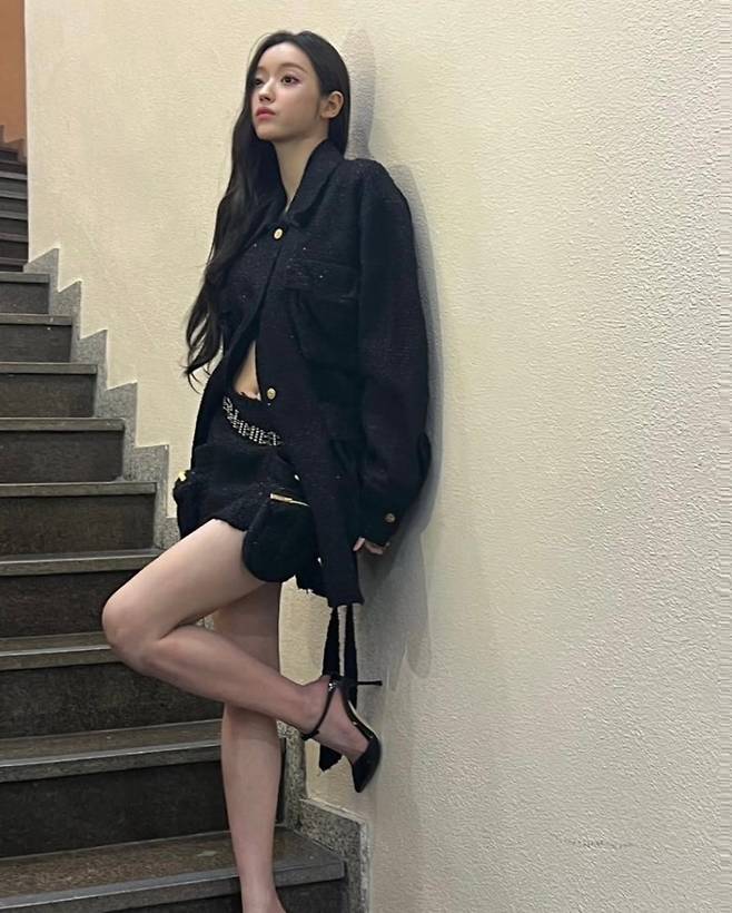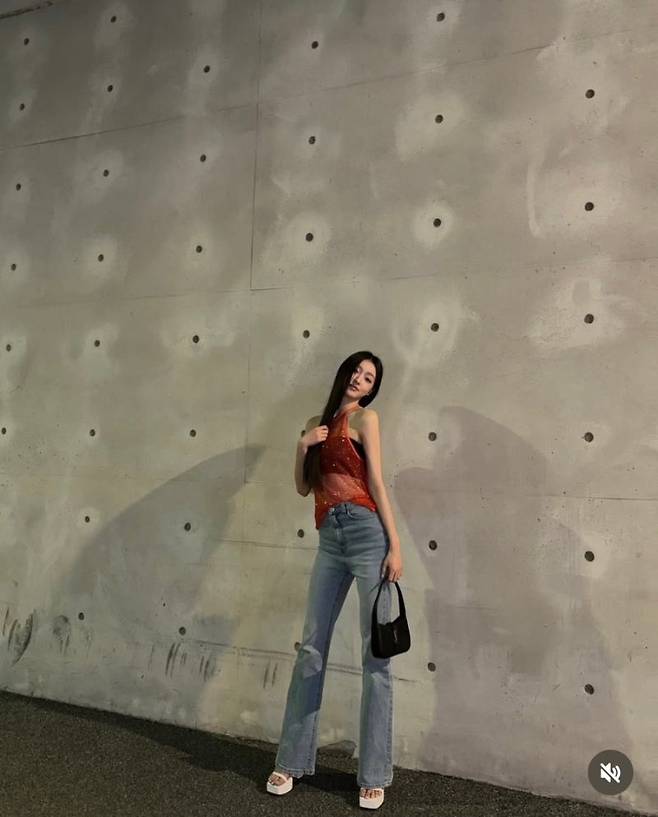 유아의 데님 패션은 언제나 화제의 중심! 하이힐과 부츠컷 데님 바지를 매치하여 다리가 더욱 길어 보이는 효과를 주었습니다. 특히, 작은 얼굴 덕분에 9등신 비율을 자랑하며, 어떤 스타일의 데님도 완벽하게 소화하는 모습입니다. 롱다리 패션의 정석을 보여주는 유아!