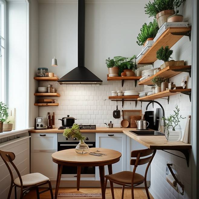 밝은 색상의 벽지와 가구를 사용하여 시각적으로 넓어 보이는 효과를 주었습니다.
