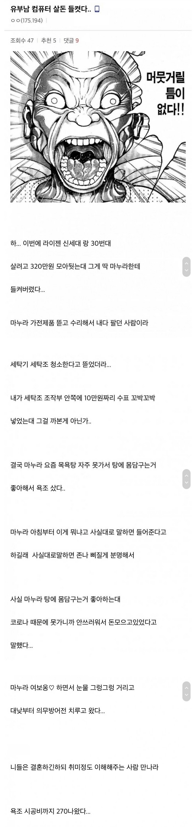 컴퓨터 살 돈 들킨 유부남