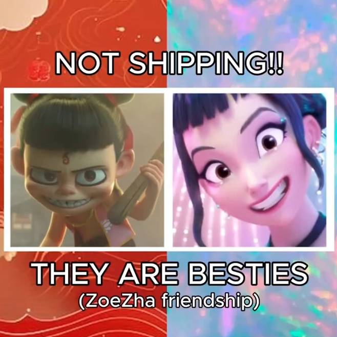 넷플릭스 애니메이션 <케이팝 데몬 헌터스>(이하 '케데헌')의 주요 캐릭터 조이와 중국 애니메이션 영화 <너자2>의 주인공 너자가 닮았다는 이야기가 SNS에서 화제다. 일부 팬들은 두 캐릭터의 이미지가 합성된 포스터를 만들어 "베스트 프렌드"라는 문구를 덧붙이기도 했다.