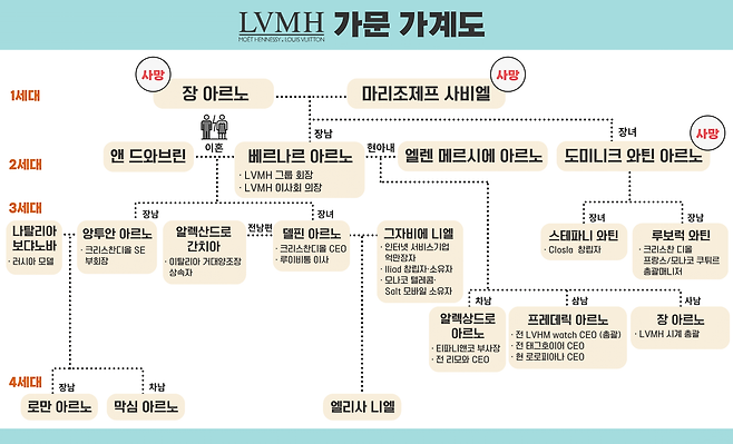창업주 베르나르 자녀들 모두 경영 참여, ‘능력 위주’ 원칙 외엔 후계구도 전부 안갯속