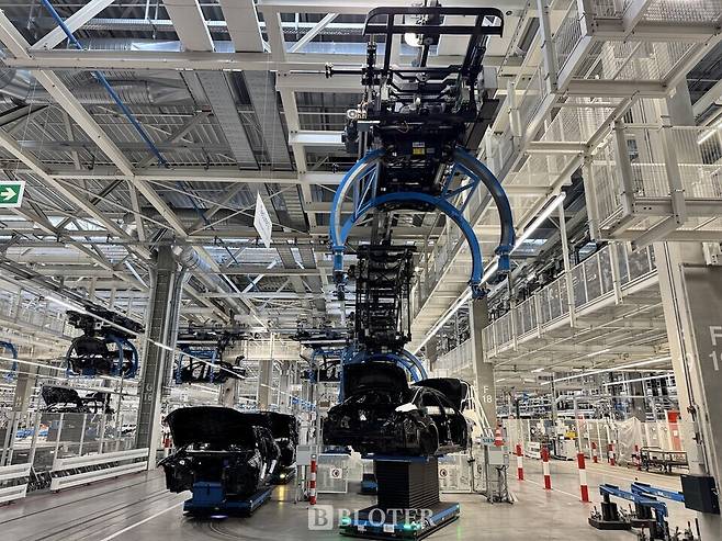 공장에 들어서는 순간 EQS, S클래스, 마이바흐 S클래스 등 벤츠 주력 세단 3종이 한라인에서 생산되는 모습을 볼 수 있었다. 내연기관차와 전기차 등 어떠한 종류의 차량을 손쉽게 같은 라인에서 생산할 수 있다는 것이 벤츠 공장 투어 안내자의 설명이다.