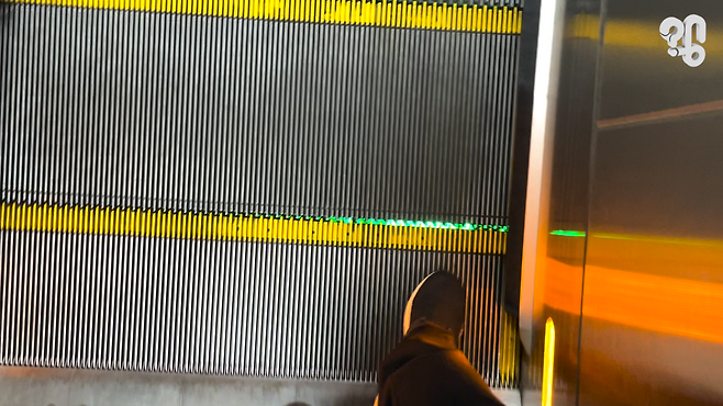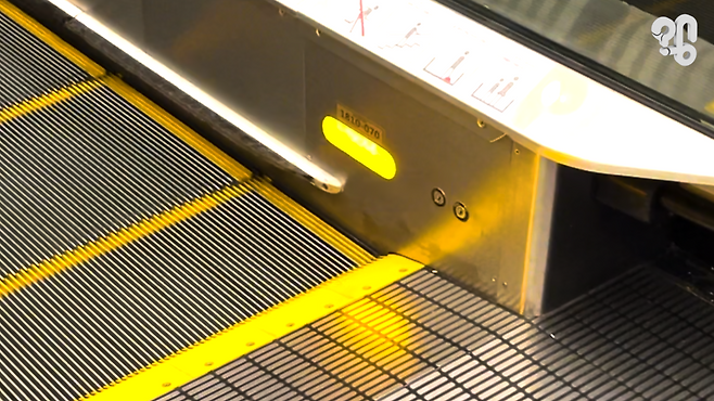 이 영상을 보라. 에스컬레이터를 탈 때, 발판에 올라서는 순간 에스컬레이터에 초록빛이 번뜩하고 보인다. 마치 에스컬레이터 내부 부품을 얼핏 들여다본 것 같은 기분이 드는데. 유튜브 댓글로 “에스컬레이터나 무빙워크의 틈 사이로 보이는 초록색 빛의 정체가 궁금하다"라는 의뢰가 들어와 취재했다.