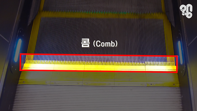 이 ‘콤’ 부분에 옷자락, 운동화 끈, 우산 꼭지 등이 끼어서 사고가 나는 경우가 많다고. 때문에 이 ‘콤' 부분을 밝혀주는 ‘콤 조명(Comb Lighting)’이 설치된 에스컬레이터도 많다.