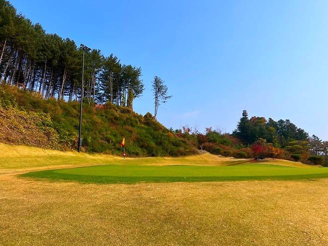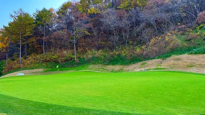 에이프런은 다른 골프장과 마찬가지인 켄터키블루 그라스로, 그린 주변은 조선 잔디로 되어있어 색상으로 명확히 구분 지어졌습니다. 그린 주변 러프 길이는 A 러프라고 생각하시면 되고 지반이 단단하지 않아 그린 주변에서 플레이 시 퍼팅 공략보다 어프로치 플레이가 조금 더 유리한 편이었습니다.