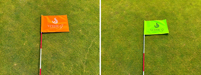 이날 베뉴지cc 라운딩 중 모든 홀에서 잔디 플레이했습니다. 티박스의 관리 상태는 양호하다 말할 순 없었지만 모든 홀 잔디 플레이한 게 좋았고, 티박스의 크기는 타원형 형태의 평균 사이즈, 티박스의 잔디는 켄터키블루 그라스를 사용 중입니다. 이날 티잉그라운드 잔디 길이는 짧게 관리되어 티를 꽂을 때 티 높이 선정의 불편함이 없었고, 대부분 티 박스는 평활도가 좋았습니다.