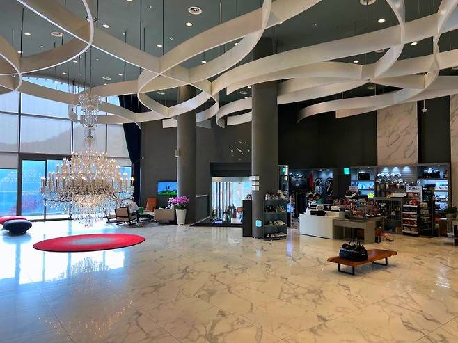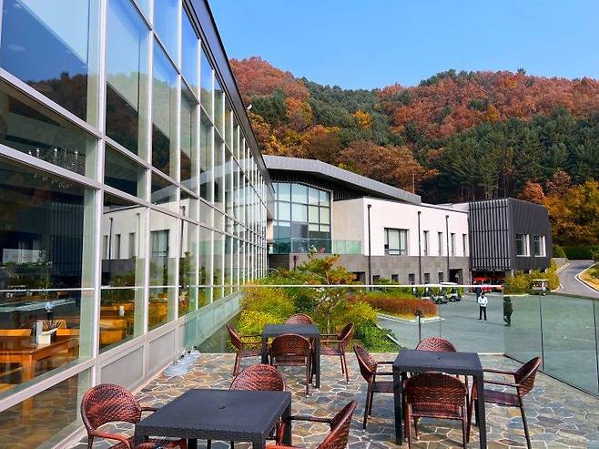 베뉴지cc 클럽하우스 내부는 최근에 지어진 골프장답게 고급스러운 모습입니다. 회원제 골프장으로 계획됐다 코스 조성 공사 중 퍼블릭으로 전환했다고 알려져 있는데, 여느 골프장들과 마찬가지로 높은 층고와 전면 유리창을 통해 코스를 바라볼 수 있게 되어있습니다.