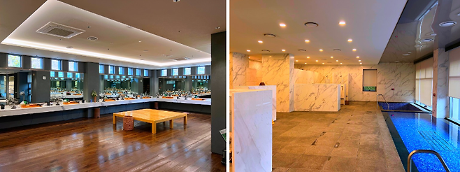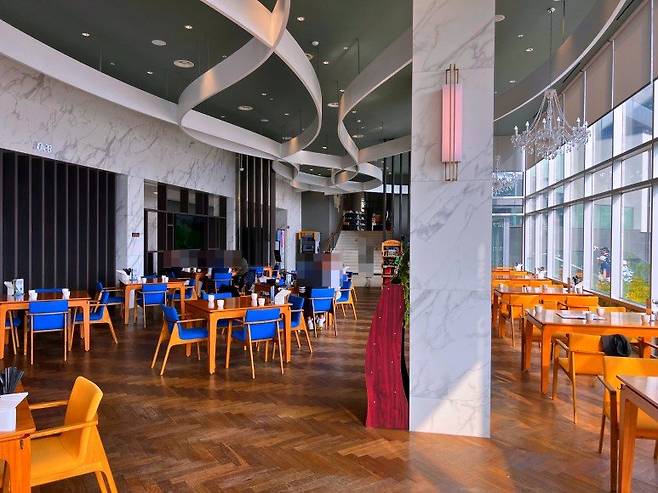 베뉴지cc의 대식당은 리셉션보다 한층 아래에 위치해있습니다. 다른 골프장과 다른 점은 대식당과 스타트하우스를 동일한 공간에서 사용한다는 점입니다.