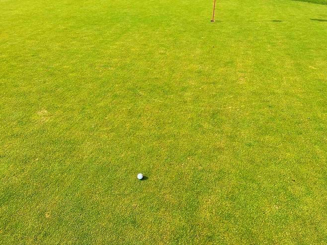 이날 플레이한 베뉴지cc의 그린은 그린 보수가 잘 되어있고 상태가 양호한 편이었습니다. 그린은 홀마다 차이가 없을 정도로 볼을 잘 받아주는 편이었고, 보수기가 필요할 정도의 피치 마크가 적당한 크기로 생기는 편이었습니다.