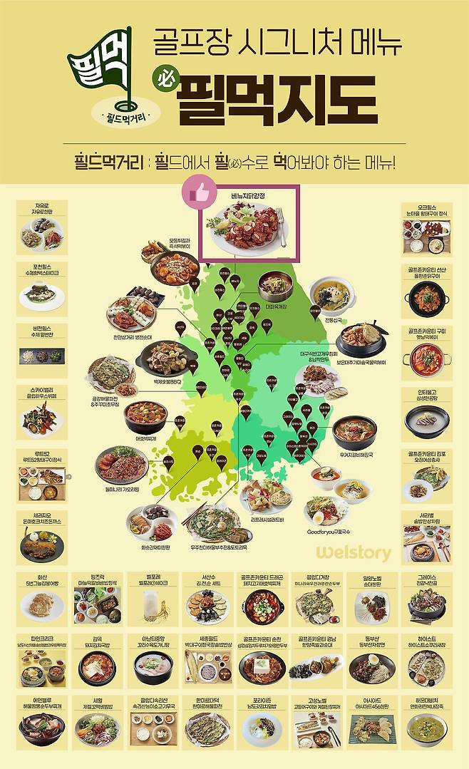 요즘은 골프장 대식당이나 스타트하우스를 외주로 돌리는 추세인데 그중 삼성에서 운영하는 삼성 웰스토리가 많이 보이는 듯합니다. 운영하는 골프장의 시그니처 메뉴도 있길래 가져와봤습니다.