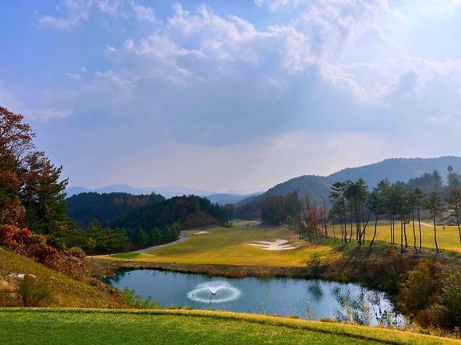 베뉴지cc는 가평의 칼봉산(910m) 자락을 기점으로 선인봉(489m), 수정봉(447m), 송이봉(804m) 등에 둘러싸여 있어 산악지형의 형태를 잘 살려냈습니다. 조성된 지 4년 정도밖에 되지 않아 코스 내에 수령 높은 나무는 없지만 주변 산들과 어울려 조성된 지 오래된 골프장의 모습을 지니고 있습니다.