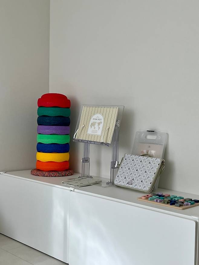 집안에 색을 안 넣고 심플하고 깔끔하게만 넣은 이유는 아이들 장난감이 세상 알록달록하기 때문이에요.
