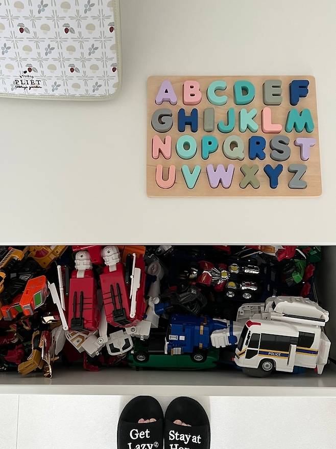 예전 집에 살땐 불투명한 정리함에 장난감을 넣으니 정리함을 다 열어서 찾아보고 더 난장판이 되어 이번에 집 정리를 하면서 내용이 잘보이는 투명한 정리함에다 정리해주었어요. 따로 라벨지를 안붙여도 쉽게 찾을 수 있고 이것 저것 안꺼내고 가지고 놀고 싶은 것만 꺼내서 가지고 노니 어지럽히는 일도 훨씬 줄어든 것 같아요.