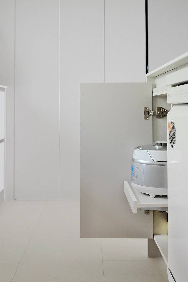 식세기 옆엔 밥솥장을 두어 주방의 동선을 최소화하였습니다.