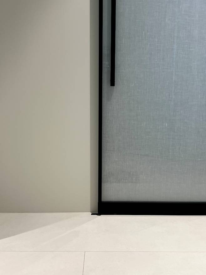 패브릭 접합 유리 너무 고급지지 않나요? 실물이 진짜 이쁜데 사진에 잘 안 담겨서 이 느낌이 제대로 표현되지 않은 것 같아 조금 아쉬워요. 프레임과 손잡이도 최대한 슬림하면서 어린 아이들이 있기 때문에 너무 위험하지 않는 선에서 정했어요.