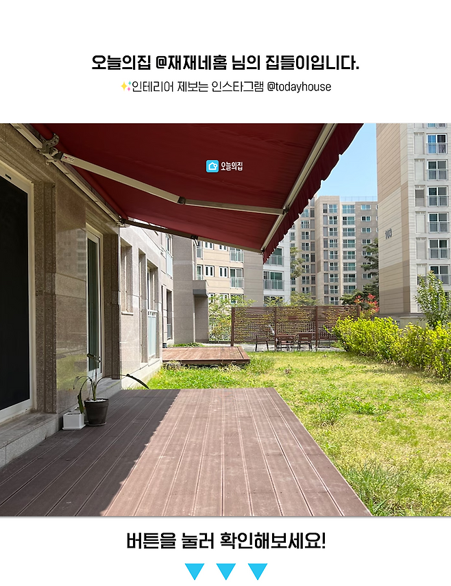 어닝 색상을 바꾸고 싶었지만, 아파트 브랜드의 특유의 고유 색상이고, 아무래도 제 마음대로 교체할 수 있는 부분은 아니라서 어닝은 있는 그대로 사용하고 있답니다.
