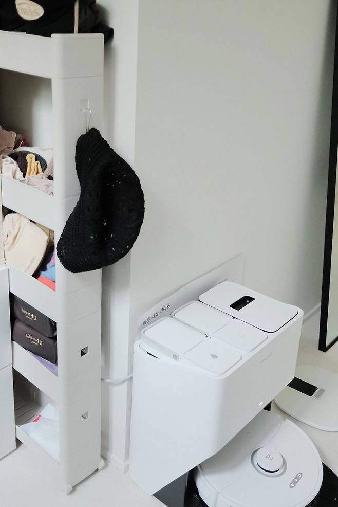 베이비장 틈새는 틈새서랍장으로 모자와 청소용품을 수납할 수 있게 해뒀어요. 작은공간도 수납 포기못해요✊🏻✊🏻