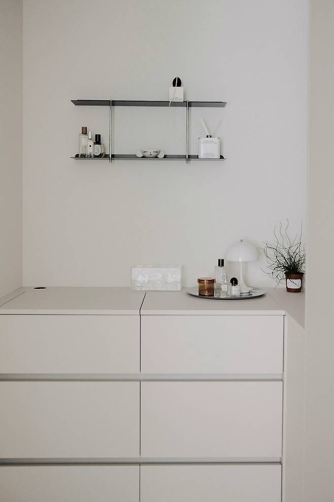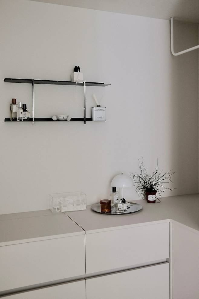 화장을 서서 하는 편이고 화장대에 화장품들이 올라가 있는 모습과 먼지가 쌓이는 모습이 싫어서 저는 화장대를 숨겼는데요. '다들 화장대는 왜 없어?'라고 하지만 숨겨진 공간에 있답니다.