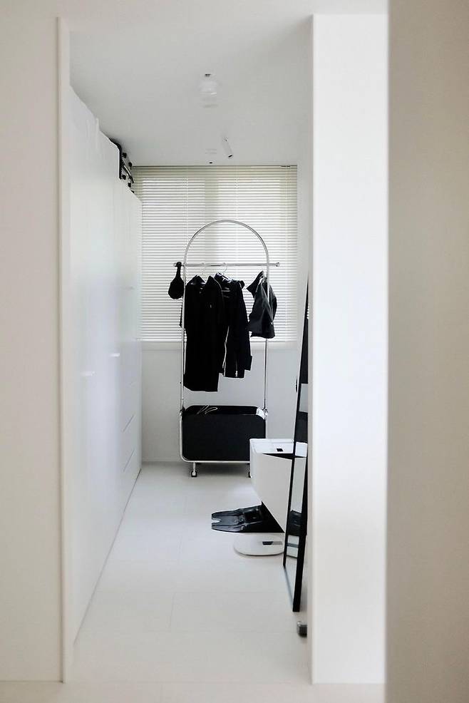 옷장과 서랍장을 배치하고 남은 공간은 옷봉을 달아 간단한 샤워가운이나 가방을 걸어두는 공간으로 사용해요.