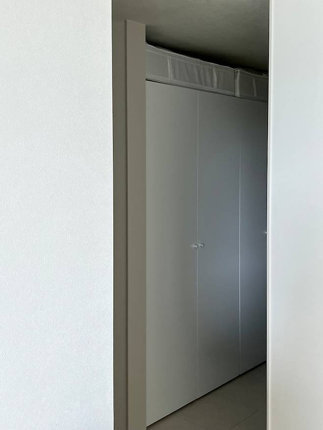 바로 위쪽 문틀을 제거하고 문 높이를 높여 윗틀을 없앴어요. 11자형 9mm문선이라고 생각하시면 될 것 같아요. 이 부분은 되는 집이 있고 안되는 집이 있으실텐데, 가능하시다면 꼭 한번 도전해보시길 바래요. 안방소개에 문 사진이 더 있으니 참고하시길 바래요! 아무래도 같은 9mm 문선이라도 느낌이 달라지니까요.