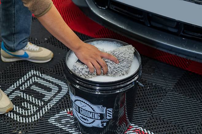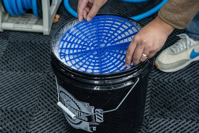 세차용 버킷에 필수로 구매해야 하는 제품은 ‘그릿가드(또는 버킷가드)’다. 버킷 안에 삽입해 사용하는 제품으로, 흙이나 모래 등 오염물이 떠오르지 않게 돕는다. 워시미트에 깨끗한 거품만 묻혀 세차할 수 있으며, 이를 통해 도장면의 스크래치를 최소화할 수 있다.