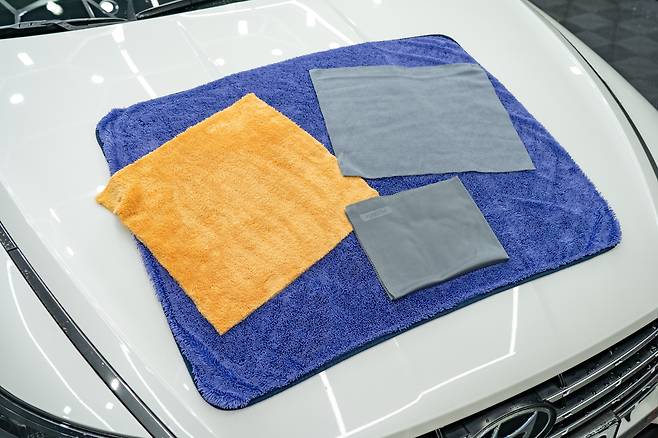 우선 세차 후 물기를 빠르고 효과적으로 제거할 수 있는 넓은 면적의 드라잉 타월이 있어야 하며, 도장면 왁스 작업 또는 실내 대시보드나 가죽시트 등을 닦을 때 사용할 수 있는 버핑 타월(또는 다용도 타월), 차 유리에 사용할 수 있는 유리용 타월 등 세 가지를 구비해두는 게 좋다.